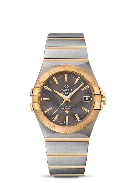 Эта модель имеет серый циферблат теплого оттенка с окошком указателя даты в положении «3 часа» и устойчивым к царапинам сапфировым стеклом. Безель из 18-каратного желтого золота с выгравированными римскими цифрами закреплен на корпусе диаметром 35 мм из нержавеющей стали, который дополнен стальным браслетом с соединительными элементами из 18-каратного желтого золота. В этой модели используется коаксиальный часовой механизм, калибр 2500, который виден сквозь сапфировое стекло задней крышки корпуса.