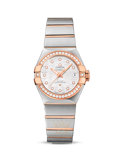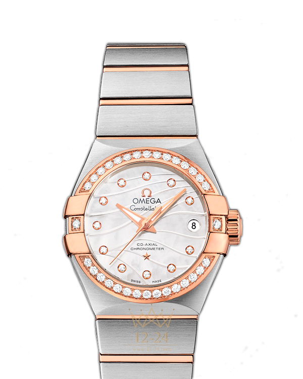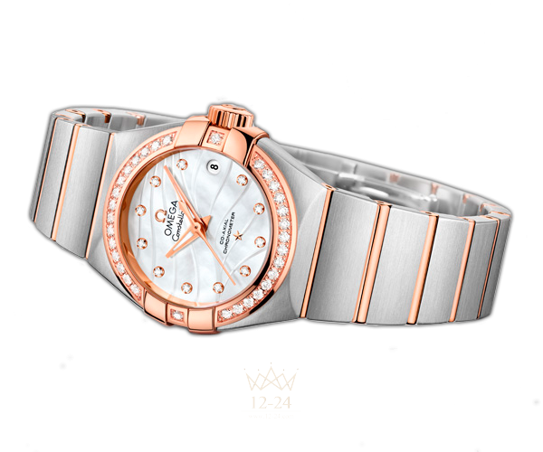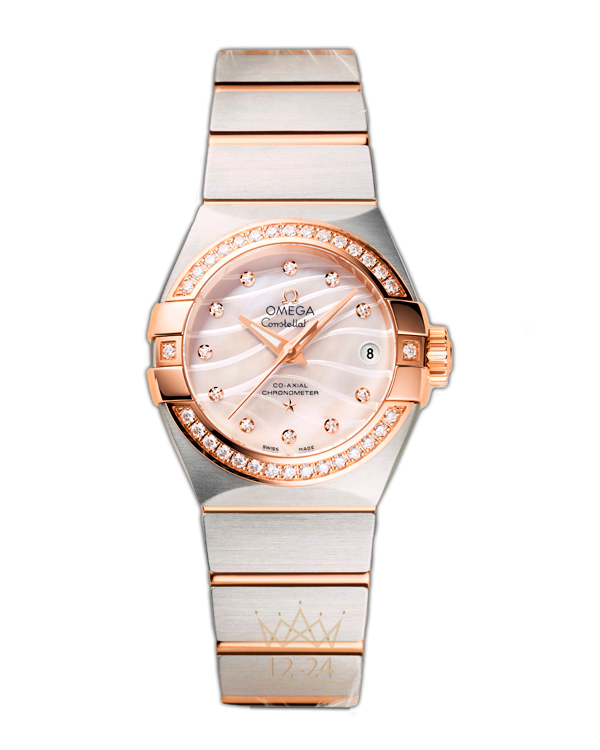 Данная модель имеет гравированный белый перламутровый циферблат с узором из расходящихся от легендарных скобок волн. Циферблат насчитывает 11 бриллиантовых часовых меток. В положении «3 часа» находится окошко указателя даты. Украшенный бриллиантами безель из 18-каратного розового золота закреплен на корпусе диаметром 27 мм из нержавеющей стали, который дополнен стальным с соединительными элементами из 18-каратного розового золота. В часах используется коаксиальный часовой механизм OMEGA, калибр 8520.