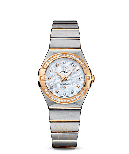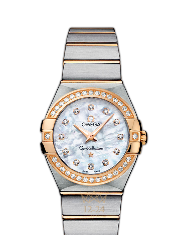 Необычайно эффектный дизайн часов OMEGA Constellation прошел проверку временем. Его характерной особенностью стали знаменитые скобки по бокам часового корпуса и впечатляющие циферблаты. Эта сатинированная модель имеет белый перламутровый циферблат с бриллиантовыми часовыми метками, который накрыт устойчивым к царапинам сапфировым стеклом. Украшенный бриллиантами безель из 18-каратного желтого золота закреплен на корпусе диаметром 27 мм из нержавеющей стали, который дополнен браслетом из нержавеющей стали и 18-каратного желтого золота. В этих часах используется высокоточный кварцевый механизм OMEGA, калибр 1376.