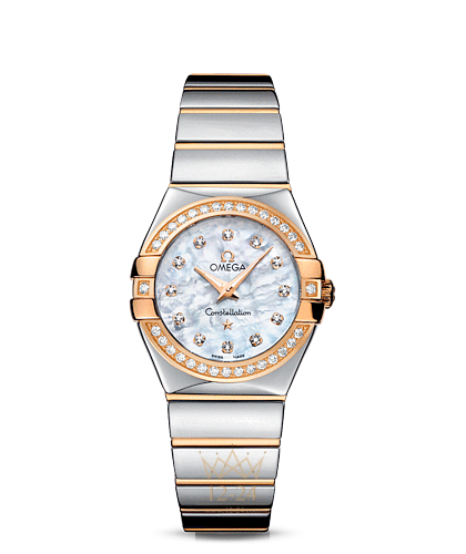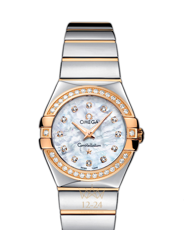 Необычайно эффектный дизайн часов OMEGA Constellation прошел проверку временем. Его характерной особенностью стали знаменитые скобки по бокам часового корпуса и впечатляющие циферблаты. Эта полированная модель имеет белый перламутровый циферблат с бриллиантовыми часовыми метками, который накрыт устойчивым к царапинам сапфировым стеклом. Украшенный бриллиантами безель из 18-каратного желтого золота закреплен на корпусе диаметром 27 мм из нержавеющей стали, который дополнен браслетом из нержавеющей стали и 18-каратного желтого золота. В этих часах используется высокоточный кварцевый механизм OMEGA, калибр 1376.
