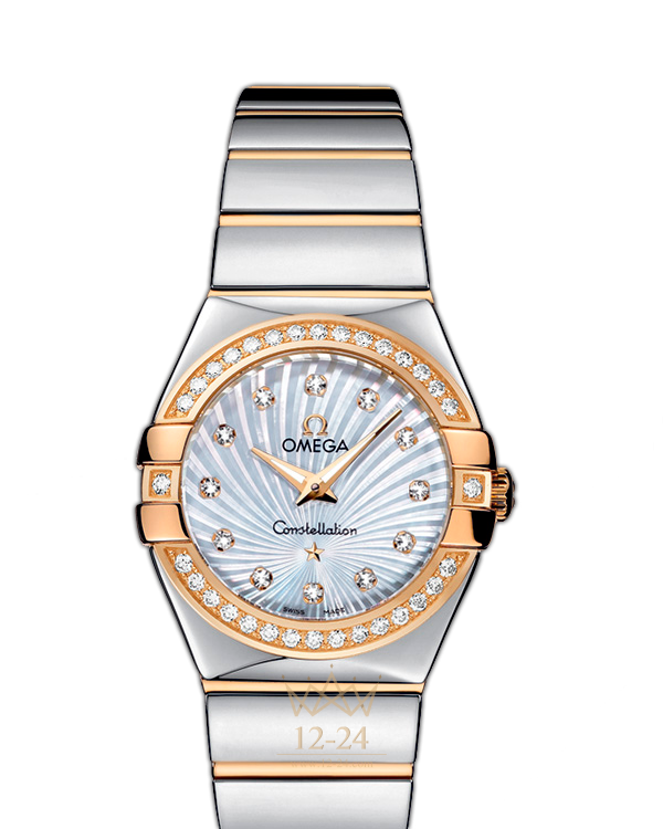Необычайно эффектный дизайн часов OMEGA Constellation прошел проверку временем. Его характерной особенностью стали знаменитые скобки по бокам часового корпуса и впечатляющие циферблаты. Эта полированная модель имеет белый перламутровый циферблат с узором Supernova и бриллиантовыми часовыми метками, который накрыт устойчивым к царапинам сапфировым стеклом. Украшенный бриллиантами безель из 18-каратного желтого золота закреплен на корпусе диаметром 27 мм из нержавеющей стали, который дополнен браслетом из нержавеющей стали и 18-каратного желтого золота. В этих часах используется высокоточный кварцевый механизм OMEGA, калибр 1376.