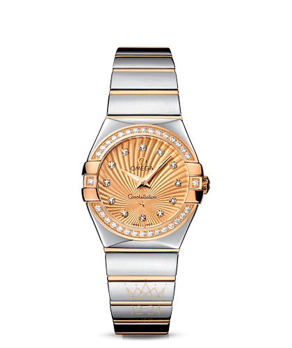 Необычайно эффектный дизайн часов OMEGA Constellation прошел проверку временем. Его характерной особенностью стали знаменитые скобки по бокам часового корпуса и впечатляющие циферблаты. Эта полированная модель имеет циферблат цвета шампанского с узором Supernova и бриллиантовыми часовыми метками, который накрыт устойчивым к царапинам сапфировым стеклом. Украшенный бриллиантами безель из 18-каратного желтого золота закреплен на корпусе диаметром 27 мм из нержавеющей стали, который дополнен из нержавеющей стали и 18-каратного желтого золота. В этих часах используется высокоточный кварцевый механизм OMEGA, калибр 1376.