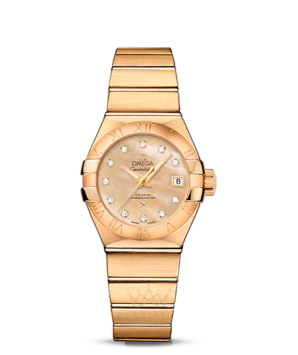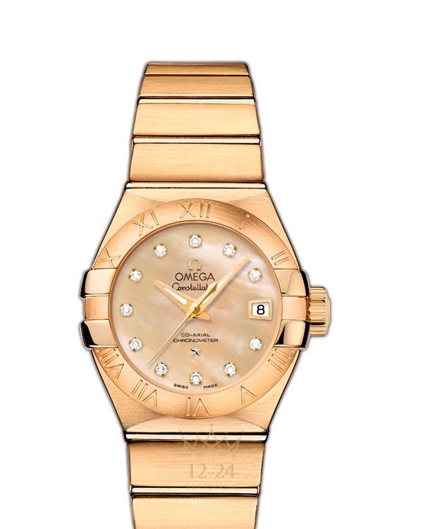 Эта модель имеет перламутровый циферблат цвета шампанского с 11 бриллиантовыми часовыми метками и окошком указателя даты в положении «3 часа». Безель с выгравированными римскими цифрами закреплен на корпусе диаметром 27 мм из 18-каратного желтого золота, который дополнен таким же золотым . В этой модели используется коаксиальный часовой механизм, калибр 8521, который виден сквозь сапфировое стекло задней крышки корпуса.