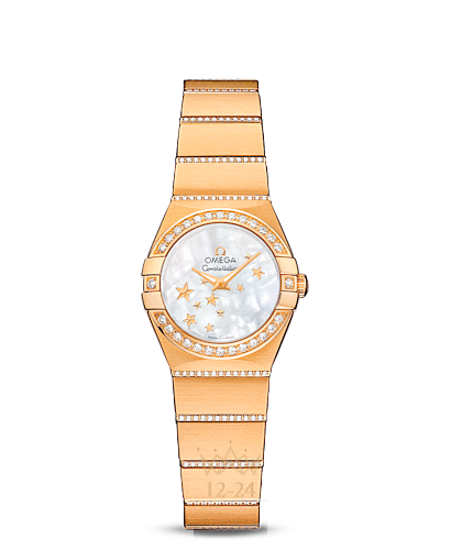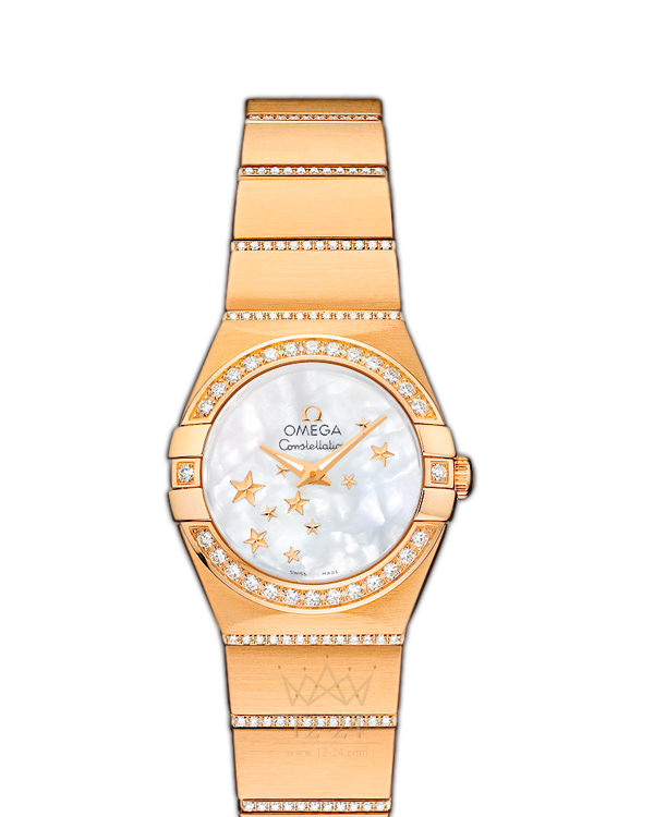 Эта модель имеет белый перламутровый циферблат с россыпью накладных звезд из 18-каратного золота, который накрыт устойчивым к царапинам сапфировым стеклом. Украшенный бриллиантами безель закреплен на корпусе диаметром 24 мм из 18-каратного желтого золота, который дополнен из 18-каратного желтого золота. В этих часах используется высокоточный кварцевый механизм OMEGA, калибр 1376.
