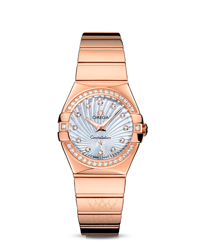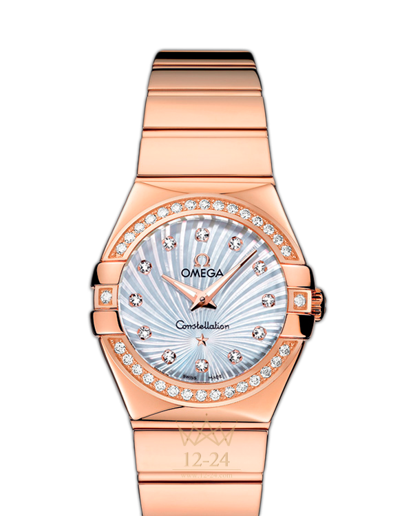 Необычайно эффектный дизайн часов OMEGA Constellation прошел проверку временем. Его характерной особенностью стали знаменитые скобки по бокам часового корпуса и впечатляющие циферблаты. Эта полированная модель имеет белый перламутровый циферблат с узором Supernova и бриллиантовыми часовыми метками, который накрыт устойчивым к царапинам сапфировым стеклом. Украшенный бриллиантами безель закреплен на корпусе диаметром 27 мм из 18-каратного розового золота, который дополнен из 18-каратного розового золота. В этих часах используется высокоточный кварцевый механизм OMEGA, калибр 1376.
