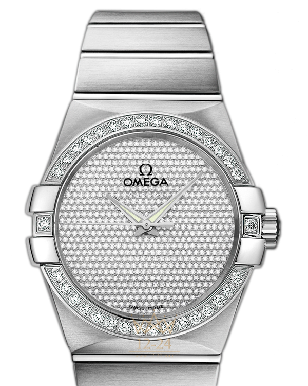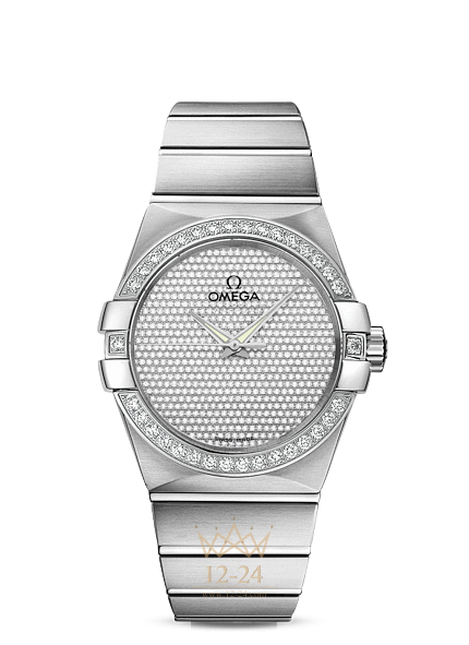 Эта роскошная сатинированная модель имеет покрытый бриллиантовым паве циферблат из 18-каратного белого золота, который виден сквозь устойчивое к царапинам сапфировое стекло. Украшенный бриллиантами безель закреплен на корпусе диаметром 38 мм из 18-каратного белого золота, который дополнен из 18-каратного белого золота. В этой модели используется коаксиальный часовой механизм OMEGA, калибр 8401, который виден сквозь прозрачную заднюю крышку корпуса.