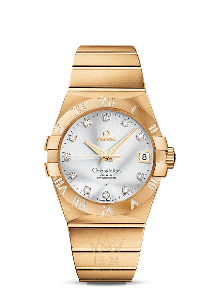 Эта модель имеет сатинированный узором «солнечные лучи» серебристый циферблат с бриллиантовыми часовыми метками, окошком указателя даты в положении «3 часа» и устойчивым к царапинам сапфировым стеклом. Безель с выложенными из бриллиантов римскими цифрами закреплен на корпусе диаметром 38 мм из 18-каратного желтого золота. Часы дополняет браслет из того же материала. Основу этих часов составляет коаксиальный часовой механизм OMEGA, калибр 8501, который виден сквозь прозрачную заднюю крышку корпуса.