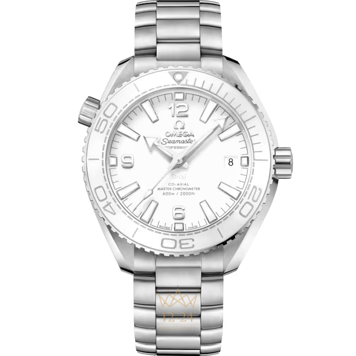 Ее белый керамический циферблат с арабскими цифрами и окошком даты в положении "3 часа" защищен устойчивым к царапинам сапфировым стеклом. Вращающийся в одном направлении безель из керамики белого цвета с дайверской шкалой из материала OMEGA Liquidmetal® закреплен на корпусе диаметром 39,5 мм из нержавеющей стали.