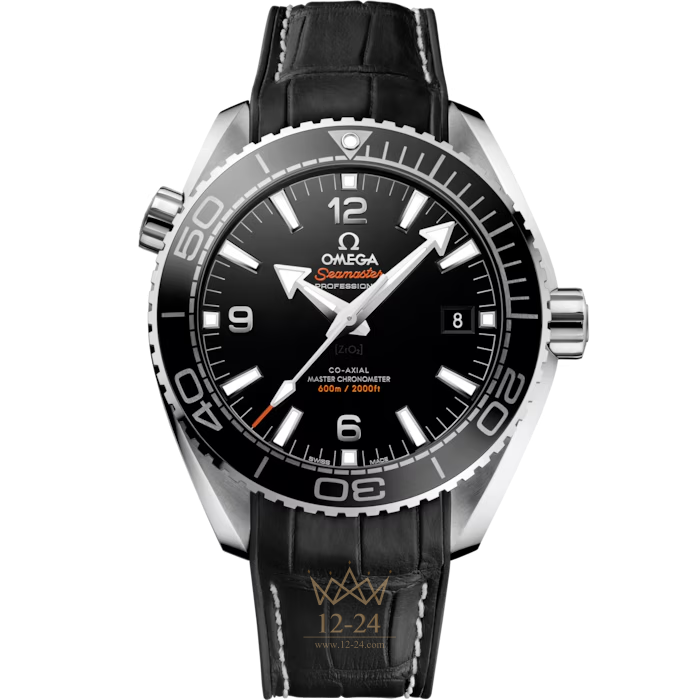 Ее черный керамический циферблат с арабскими цифрами и окошком даты в положении "3 часа" защищен устойчивым к царапинам сапфировым стеклом. Вращающийся в одном направлении безель из керамики черного цвета с дайверской шкалой из материала OMEGA Liquidmetal® закреплен на корпусе диаметром 43,5 мм из нержавеющей стали.