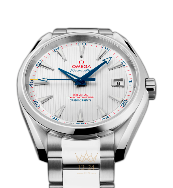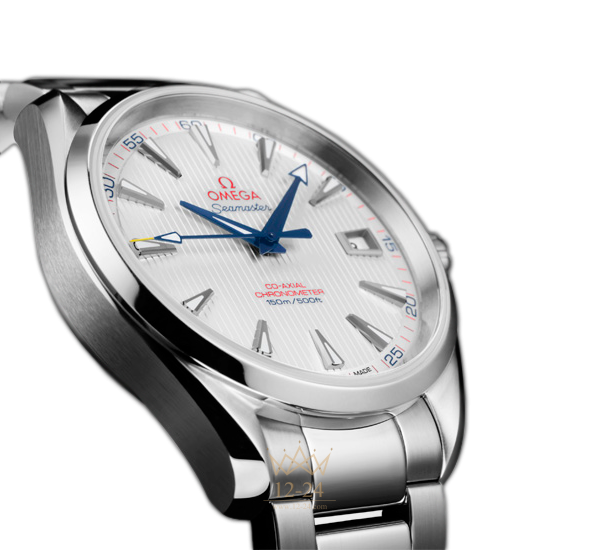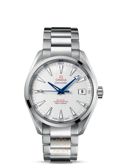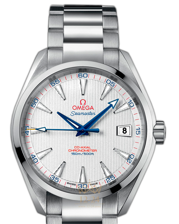 Эти высокопрочные часы с классическим дизайном воздают должное богатому морскому наследию OMEGA, а также увековечивают тот факт, что в 2012 году году бренд был избран официальным хронометристом турнира на Кубок Райдера. Данная модель OMEGA Seamaster Aqua Terra 150M "Captain's Watch" имеет серебристый циферблат, оформленный в стиле фирменной «тиковой концепции», с окошком указателя даты в положении «3 часа». Оригинальный циферблат защищен устойчивым к царапинам сапфировым стеклом. Корпус диаметром 41,5 мм из нержавеющей стали с браслетом из нержавеющей стали дополнен элегантным безелем. В этом сертифицированном хронометре используется коаксиальный часовой механизм OMEGA, калибр 8500.