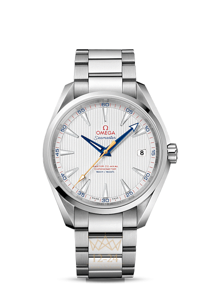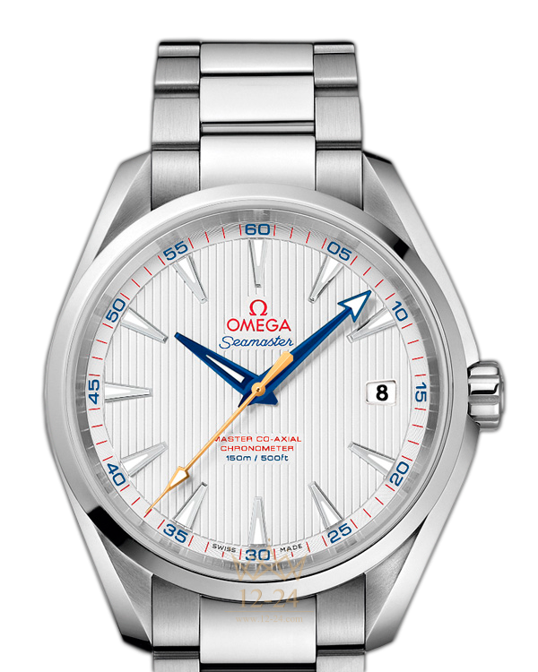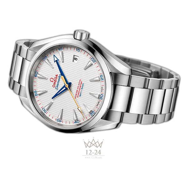 Эта модель Seamaster Aqua Terra «Golf» имеет серебристый лакированный циферблат с узором из вертикальных полос (Teak Concept). Граненые часовая и минутная стрелки синего цвета сочетаются с секундной стрелкой из 18-каратного желтого золота. Корпус диаметром 41,5 мм из нержавеющей стали дополняет стальной . В этом сертифицированном хронометре используется часовой механизм OMEGA Master Co-Axial, калибр 8500, который противостоит магнитным полям силой более 15000 гаусс и хорошо виден сквозь прозрачную заднюю крышку корпуса.