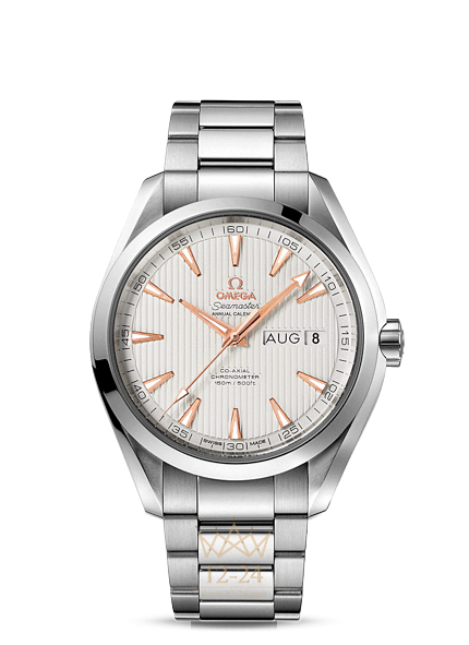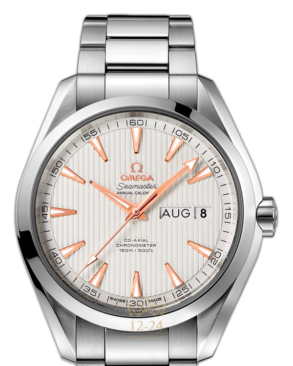 Эти высокопрочные часы классического дизайна воздают должное богатому морскому наследию OMEGA. Эффектный, мгновенно узнаваемый дизайн циферблата, характерный для коллекции OMEGA Seamaster Aqua Terra 150M, напоминает тиковое покрытие роскошных яхт. Данная модель имеет стрелки и часовые индексы из 18-каратного розового золота на серебристом циферблате с узором из вертикальных полос (Teak Concept) и окошками указателей месяца и даты в положении «3 часа». Оригинальный циферблат защищен устойчивым к царапинам сапфировым стеклом. Корпус диаметром 43 мм из нержавеющей стали с из нержавеющей стали дополнен элегантным безелем. В этих часах используется эксклюзивный коаксиальный часовой механизм OMEGA, калибр 8601.