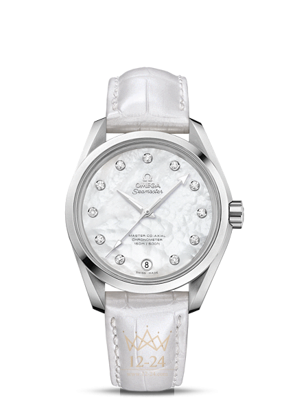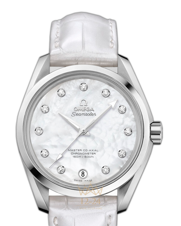 Часы Seamaster Aqua Terra Master Co-Axial оснащены одним из самых передовых в мире часовых механизмов. Стильная модель в спортивном стиле превосходно подходит тем, кто ведет активный образ жизни. Эти роскошные часы имеют жемчужно-перламутровый циферблат с 11 бриллиантовыми часовыми метками. Женские наручные часы в корпусе диаметром 38,5 мм из нержавеющей стали дополняет белый кожаный ремешок с перламутровым эффектом. Основу часов составляет революционный часовой механизм OMEGA Master Co-Axial, калибр 8500, способный выдерживать воздействие магнитных полей силой более 15000 гаусс.