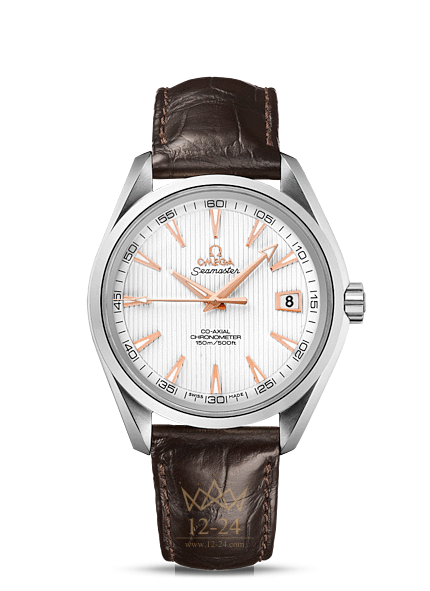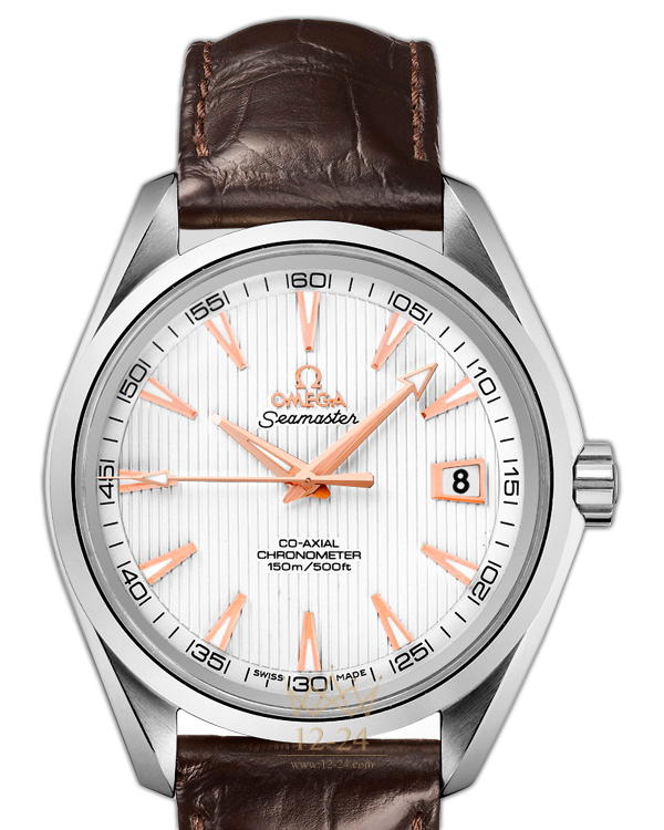 Эти высокопрочные часы с классическим дизайном воздают должное богатому морскому наследию OMEGA. Эффектный, мгновенно узнаваемый дизайн циферблата, характерный для коллекции OMEGA Seamaster Aqua Terra 150M, напоминает текстуру тикового покрытия роскошных яхт. Данная модель имеет серебристый циферблат, оформленный в стиле фирменной «тиковой концепции», с окошком указателя даты в положении «3 часа». Оригинальный циферблат защищен устойчивым к царапинам сапфировым стеклом. Корпус диаметром 41,5 мм из нержавеющей стали с коричневым кожаным ремешком дополнен элегантным безелем. В этом сертифицированном хронометре используется коаксиальный часовой механизм OMEGA, калибр 8500, который хорошо виден через прозрачную заднюю крышку.