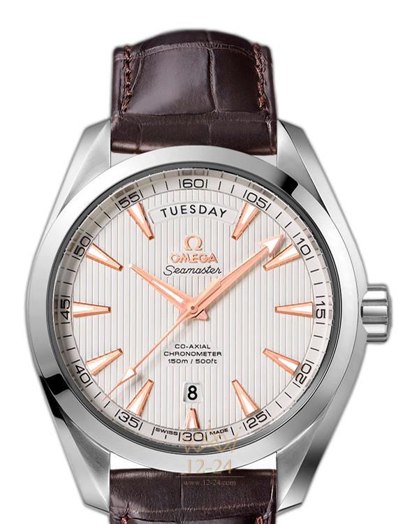 Эти высокопрочные часы классического дизайна воздают должное богатому морскому наследию OMEGA. Эффектный, мгновенно узнаваемый дизайн циферблата, характерный для коллекции OMEGA Seamaster Aqua Terra 150M, напоминает тиковое покрытие роскошных яхт. Эта модель имеет серебристый циферблат с узором из вертикальных полос (Teak Concept). Указатель даты находится в положении «6 часов», указатель дня недели – в положении «12 часов». Оригинальный циферблат защищен устойчивым к царапинам сапфировым стеклом. Безель закреплен на корпусе диаметром 41,5 мм из нержавеющей стали с коричневым кожаным ремешком. В этом сертифицированном хронометре используется коаксиальный часовой механизм OMEGA, калибр 8602, который хорошо виден сквозь прозрачную заднюю крышку корпуса.