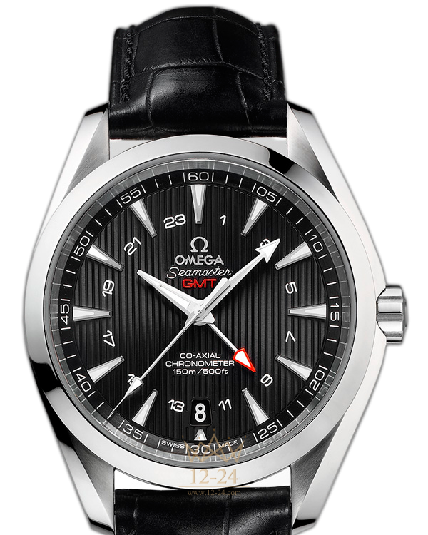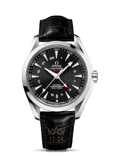 Эти высокопрочные часы с классическим дизайном воздают должное богатому морскому наследию OMEGA. Эффектный, мгновенно узнаваемый дизайн циферблата, характерный для коллекции OMEGA Seamaster Aqua Terra 150M, напоминает текстуру тикового покрытия роскошных яхт. Данная модель имеет черный циферблат, оформленный в стиле фирменной «тиковой концепции», с окошком указателя даты в положении «6 часов». Помимо центральных часовой, минутной и секундной стрелок на циферблате имеется стрелка GMT, которая совершает полный оборот каждые 24 часа. Оригинальный циферблат защищен устойчивым к царапинам сапфировым стеклом. Корпус диаметром 43 мм из нержавеющей стали с черным кожаным ремешком дополнен элегантным безелем. В этом сертифицированном хронометре используется коаксиальный часовой механизм OMEGA, калибр 8605, который хорошо виден через прозрачную заднюю крышку.