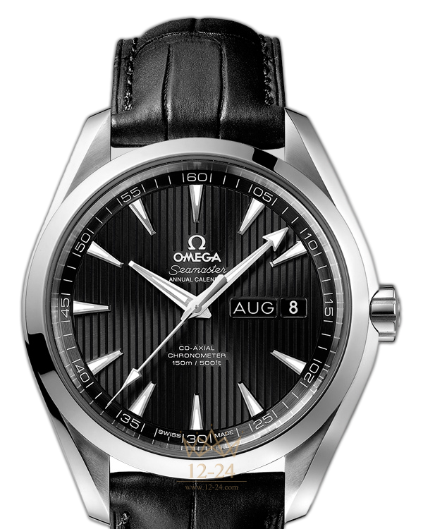 Эти высокопрочные часы классического дизайна воздают должное богатому морскому наследию OMEGA. Эффектный, мгновенно узнаваемый дизайн циферблата, характерный для коллекции OMEGA Seamaster Aqua Terra 150M, напоминает тиковое покрытие роскошных яхт. Данная модель имеет черный циферблат с узором из вертикальных полос (Teak Concept) и окошками указателей месяца и даты в положении «3 часа». Оригинальный циферблат защищен устойчивым к царапинам сапфировым стеклом. Корпус диаметром 43 мм из нержавеющей стали с черным кожаным ремешком дополнен элегантным безелем. В этих часах используется эксклюзивный коаксиальный часовой механизм OMEGA, калибр 8601.
