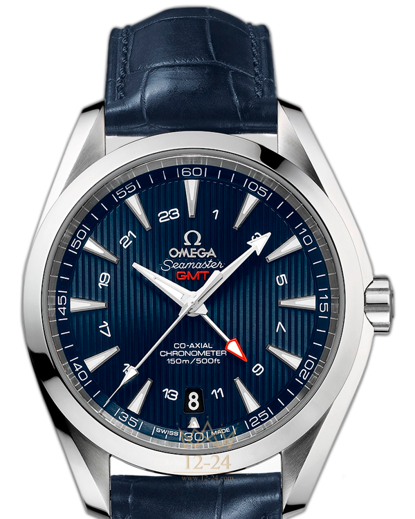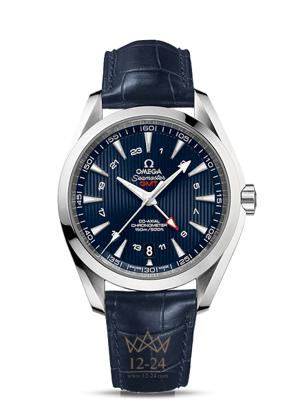 Эти высокопрочные часы с классическим дизайном воздают должное богатому морскому наследию OMEGA. Эффектный, мгновенно узнаваемый дизайн циферблата, характерный для коллекции OMEGA Seamaster Aqua Terra 150M, напоминает текстуру тикового покрытия роскошных яхт. Данная модель имеет синий циферблат, оформленный в стиле фирменной «тиковой концепции», с окошком указателя даты в положении «6 часов». Помимо центральных часовой, минутной и секундной стрелок на циферблате имеется стрелка GMT, которая совершает полный оборот каждые 24 часа. Оригинальный циферблат защищен устойчивым к царапинам сапфировым стеклом. Корпус диаметром 43 мм из нержавеющей стали с синим кожаным ремешком дополнен элегантным безелем. В этом сертифицированном хронометре используется коаксиальный часовой механизм OMEGA, калибр 8605, который хорошо виден через прозрачную заднюю крышку.