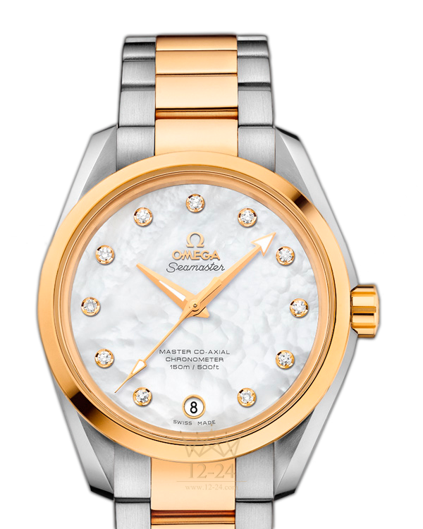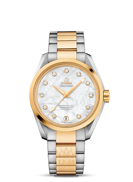 Часы Seamaster Aqua Terra Master Co-Axial оснащены одним из самых передовых в мире часовых механизмов. Стильная модель в спортивном стиле превосходно подходит тем, кто ведет активный образ жизни. Эти роскошные часы имеют жемчужно-перламутровый циферблат с 11 бриллиантовыми часовыми метками в оправе из 18-каратного золота. Женские наручные часы в корпусе диаметром 38,5 мм из 18-каратного желтого золота и нержавеющей стали дополняет браслет из нержавеющей стали со звеньями из 18-каратного желтого золота. Основу часов составляет революционный часовой механизм OMEGA Master Co-Axial, калибр 8500, способный выдерживать воздействие магнитных полей силой более 15000 гаусс.