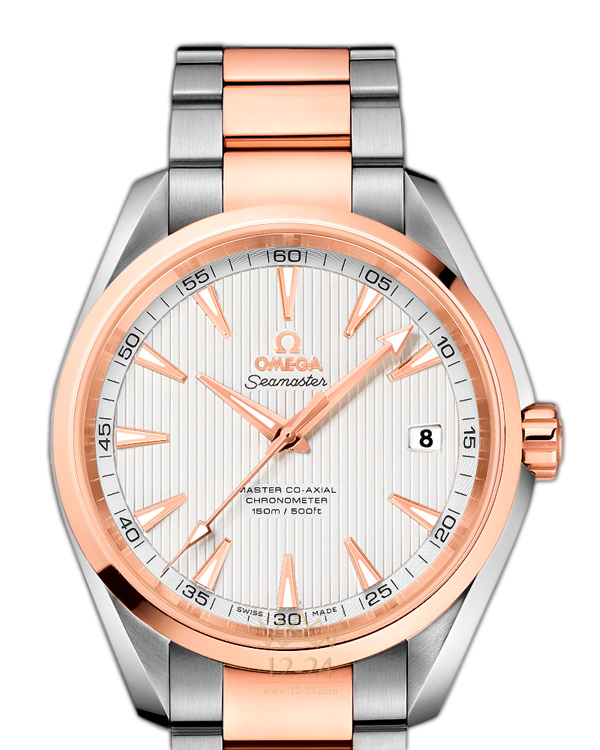 Эти высокопрочные часы с классическим дизайном воздают должное богатому морскому наследию OMEGA. Эффектный, мгновенно узнаваемый дизайн циферблата, характерный для коллекции OMEGA Seamaster Aqua Terra 150M, напоминает тиковое покрытие роскошных яхт. Данная модель имеет серебристый лакированный циферблат с узором из вертикальных полос (Teak Concept) и окошком указателя даты в положении «3 часа». Оригинальный циферблат защищен устойчивым к царапинам сапфировым стеклом. Безель из 18-каратного розового золота закреплен на корпусе диаметром 41,5 мм из нержавеющей стали, который дополняет браслет из нержавеющей стали и 18-каратного розового золота. В этом сертифицированном хронометре используется часовой механизм OMEGA Master Co-Axial, калибр 8500, который противостоит магнитным полям силой более 15000 гаусс и хорошо виден сквозь прозрачную заднюю крышку корпуса.