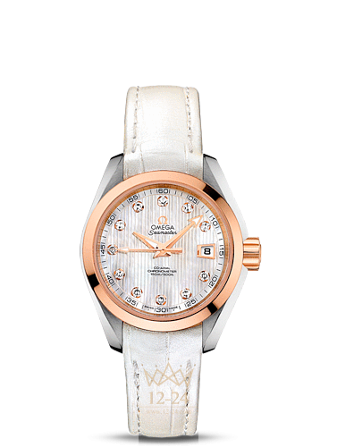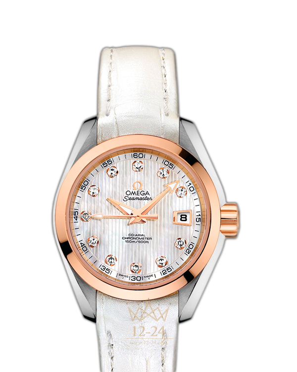 Эти высокопрочные часы с классическим дизайном воздают должное богатому морскому наследию OMEGA. Эффектный, мгновенно узнаваемый дизайн циферблата, характерный для коллекции OMEGA Seamaster Aqua Terra 150M, напоминает текстуру тикового покрытия роскошных яхт. Данная модель имеет белый перламутровый циферблат, оформленный в стиле фирменной «тиковой концепции», с бриллиантовыми часовыми метками и окошком указателя даты в положении «3 часа». Оригинальный циферблат защищен устойчивым к царапинам сапфировым стеклом. Корпус диаметром 30 мм из нержавеющей стали с белым кожаным ремешком дополнен безелем из 18-каратного красного золота. В этом сертифицированном хронометре используется коаксиальный часовой механизм OMEGA, калибр 8520, который хорошо виден через прозрачную заднюю крышку.