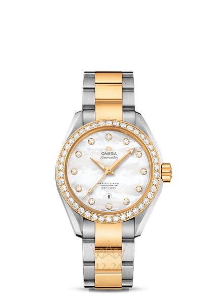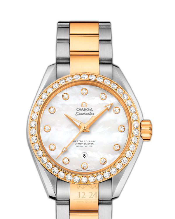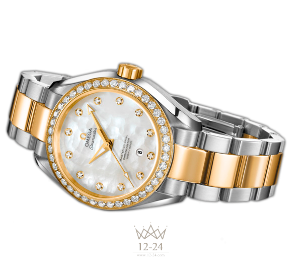 Часы Seamaster Aqua Terra Master Co-Axial оснащены одним из самых передовых в мире часовых механизмов. Стильная модель в спортивном стиле превосходно подходит тем, кто ведет активный образ жизни. Эти роскошные часы имеют жемчужно-перламутровый циферблат с 12 бриллиантовыми часовыми метками в оправе из 18-каратного золота. Женские наручные часы в корпусе диаметром 34 мм из 18-каратного желтого золота и нержавеющей стали с украшенным бриллиантами безелем дополняет браслет из нержавеющей стали со звеньями из 18-каратного желтого золота. Основу часов составляет революционный часовой механизм OMEGA Master Co-Axial, калибр 8520, способный выдерживать воздействие магнитных полей силой более 15000 гаусс.