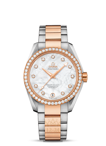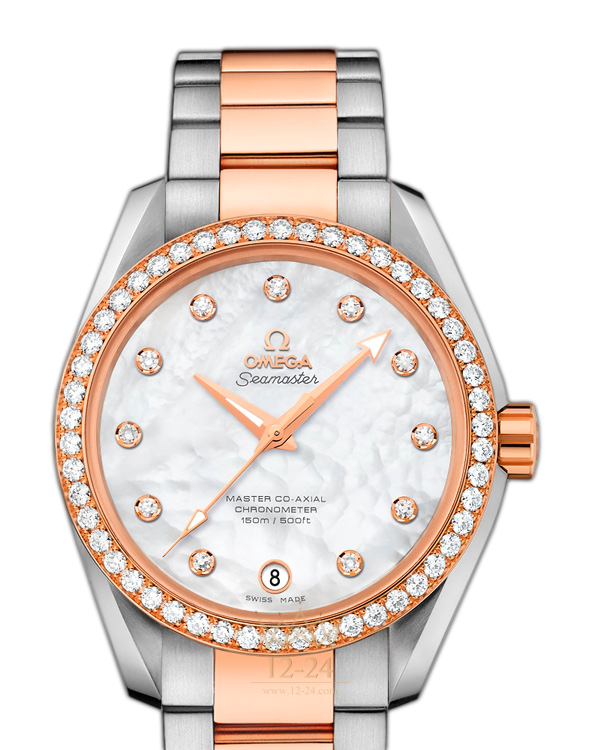 Часы Seamaster Aqua Terra Master Co-Axial оснащены одним из самых передовых в мире часовых механизмов. Стильная модель в спортивном стиле превосходно подходит тем, кто ведет активный образ жизни. Эти роскошные часы имеют жемчужно-перламутровый циферблат с 11 бриллиантовыми часовыми метками в оправе из 18-каратного золота. Женские наручные часы в корпусе диаметром 38,5 мм из 18-каратного розового золота и нержавеющей стали с украшенным бриллиантами безелем дополняет браслет из нержавеющей стали со звеньями из 18-каратного розового золота. Основу часов составляет революционный часовой механизм OMEGA Master Co-Axial, калибр 8500, способный выдерживать воздействие магнитных полей силой более 15000 гаусс.