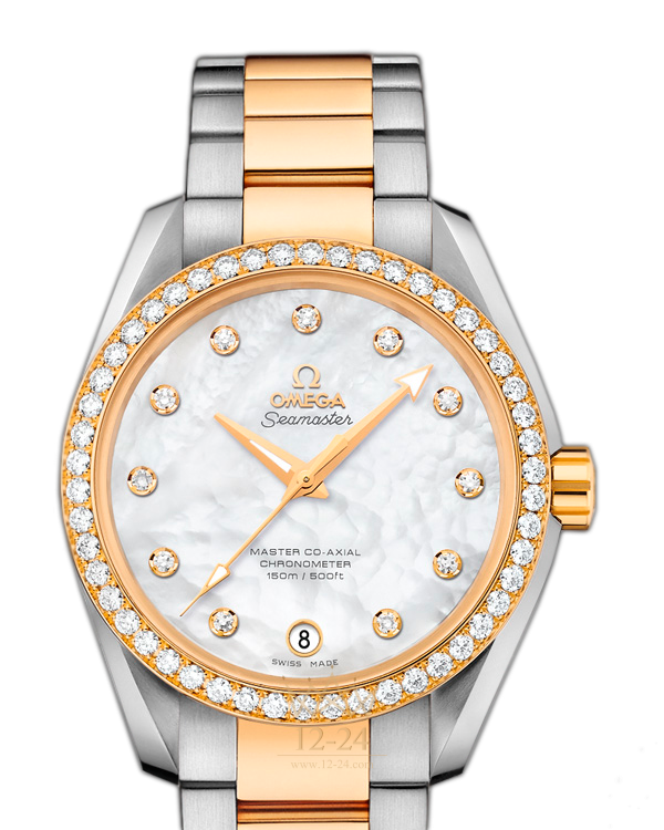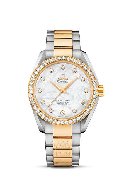 Часы Seamaster Aqua Terra Master Co-Axial оснащены одним из самых передовых в мире часовых механизмов. Стильная модель в спортивном стиле превосходно подходит тем, кто ведет активный образ жизни. Эти роскошные часы имеют жемчужно-перламутровый циферблат с 11 бриллиантовыми часовыми метками в оправе из 18-каратного золота. Женские наручные часы в корпусе диаметром 38,5 мм из 18-каратного желтого золота и нержавеющей стали с украшенным бриллиантами безелем дополняет браслет из нержавеющей стали со звеньями из 18-каратного желтого золота. Основу часов составляет революционный часовой механизм OMEGA Master Co-Axial, калибр 8500, способный выдерживать воздействие магнитных полей силой более 15000 гаусс.