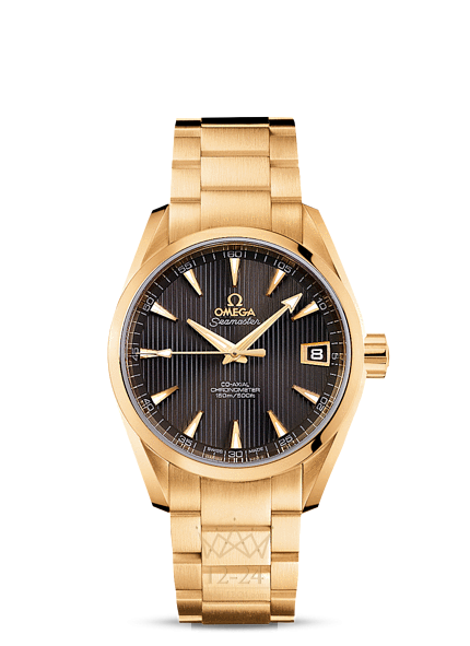 Эти высокопрочные часы с классическим дизайном воздают должное богатому морскому наследию OMEGA. Эффектный, мгновенно узнаваемый дизайн циферблата, характерный для коллекции OMEGA Seamaster Aqua Terra 150M, напоминает текстуру тикового покрытия роскошных яхт. Данная модель имеет серый циферблат, оформленный в стиле фирменной «тиковой концепции», с окошком указателя даты в положении «3 часа». Оригинальный циферблат защищен устойчивым к царапинам сапфировым стеклом. Корпус диаметром 38,5 мм из 18-каратного желтого золота с браслетом из 18-каратного желтого золота дополнен элегантным безелем. В этом сертифицированном хронометре используется коаксиальный часовой механизм OMEGA, калибр 8501, который хорошо виден через прозрачную заднюю крышку.