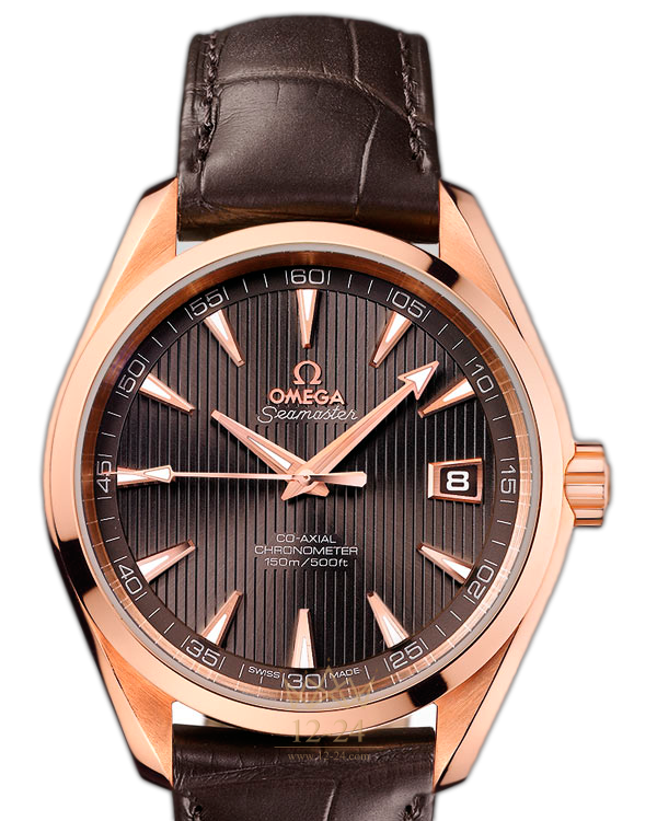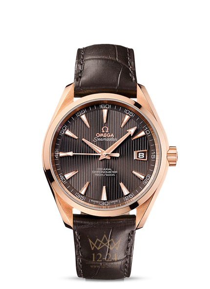 Эти высокопрочные часы с классическим дизайном воздают должное богатому морскому наследию OMEGA. Эффектный, мгновенно узнаваемый дизайн циферблата, характерный для коллекции OMEGA Seamaster Aqua Terra 150M, напоминает текстуру тикового покрытия роскошных яхт. Данная модель имеет серый циферблат, оформленный в стиле фирменной «тиковой концепции», с окошком указателя даты в положении «3 часа». Оригинальный циферблат защищен устойчивым к царапинам сапфировым стеклом. Корпус диаметром 41,5 мм из 18-каратного красного золота с коричневым кожаным ремешком дополнен элегантным безелем. В этом сертифицированном хронометре используется коаксиальный часовой механизм OMEGA, калибр 8501, который хорошо виден через прозрачную заднюю крышку.