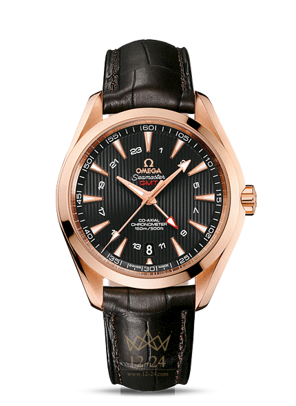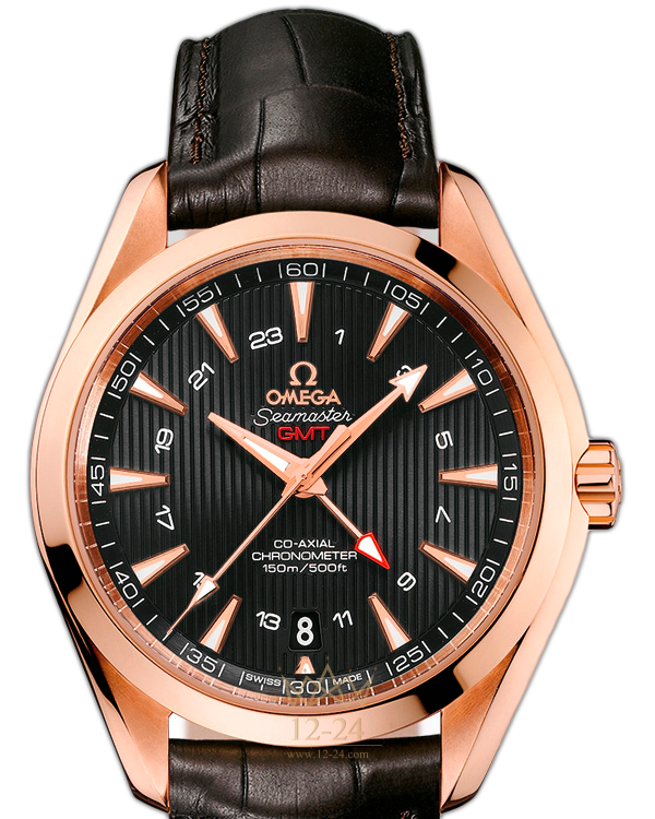 Эти высокопрочные часы с классическим дизайном воздают должное богатому морскому наследию OMEGA. Эффектный, мгновенно узнаваемый дизайн циферблата, характерный для коллекции OMEGA Seamaster Aqua Terra 150M, напоминает текстуру тикового покрытия роскошных яхт. Данная модель имеет серый циферблат, оформленный в стиле фирменной «тиковой концепции», с окошком указателя даты в положении «6 часов». Помимо центральных часовой, минутной и секундной стрелок на циферблате имеется стрелка GMT, которая совершает полный оборот каждые 24 часа. Оригинальный циферблат защищен устойчивым к царапинам сапфировым стеклом. Корпус диаметром 43 мм из 18-каратного красного золота с коричневым кожаным ремешком дополнен элегантным безелем. В этом сертифицированном хронометре используется коаксиальный часовой механизм OMEGA, калибр 8615, который хорошо виден через прозрачную заднюю крышку.