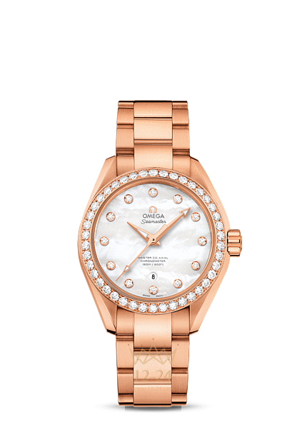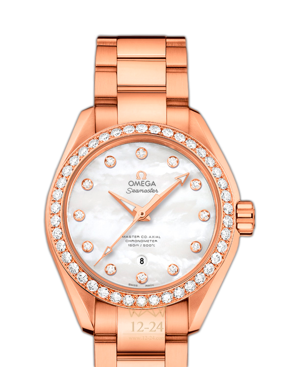 Часы Seamaster Aqua Terra Master Co-Axial оснащены одним из самых передовых в мире часовых механизмов. Стильная модель в спортивном стиле превосходно подходит тем, кто ведет активный образ жизни. Эти роскошные часы имеют жемчужно-перламутровый циферблат с 12 бриллиантовыми часовыми метками в оправе из 18-каратного золота. Женские наручные часы в корпусе диаметром 34 мм из 18-каратного золота Sedna с украшенным бриллиантами безелем дополняет браслет из 18-каратного золота Sedna. Основу часов составляет революционный часовой механизм OMEGA Master Co-Axial, калибр 8521.