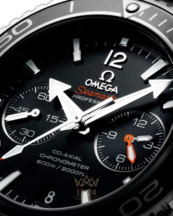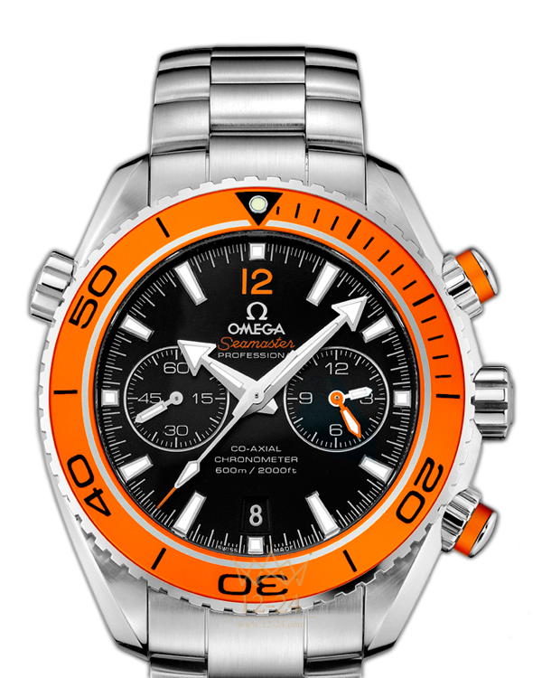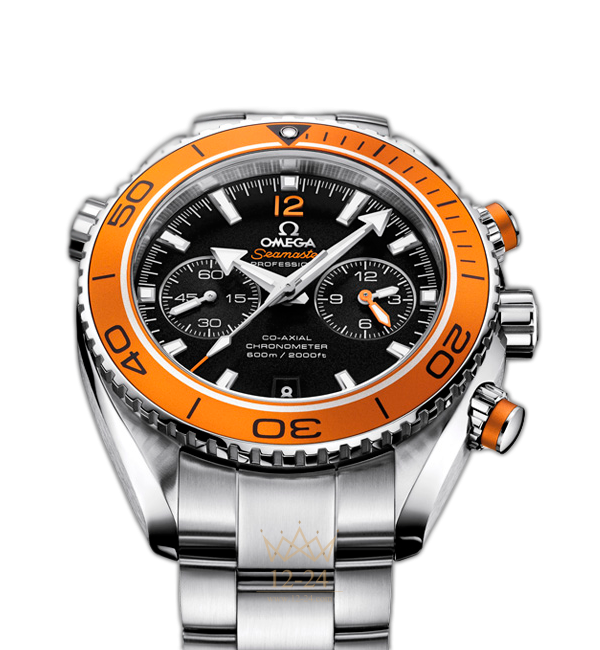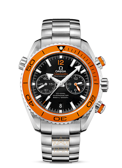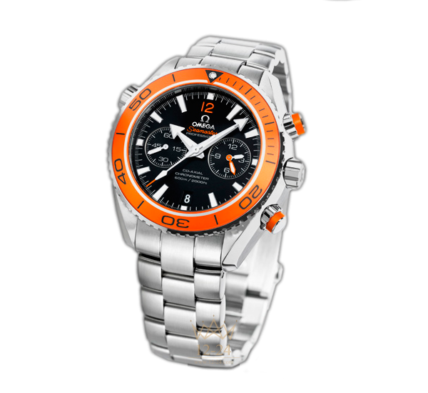 Развивая тему морского наследия бренда, в 2005 году OMEGA выпустила линию Planet Ocean. Стильная модель OMEGA Seamaster Planet Ocean 600M воздает дань историческим традициям дайверских часов OMEGA. На ее черном циферблате, защищенном устойчивым к царапинам сапфировым стеклом, имеются отдельный индикатор малой секундной стрелки, окошко указателя даты и центральная стрелка хронографа. 60-минутный и 12-часовой счетчики размещены на одном индикаторе в положении «3 часа», что обеспечивает интуитивно понятную индикацию прошедшего с начала отсчета времени. Корпус диаметром 45,5 мм из нержавеющей стали с браслетом из нержавеющей стали дополнен оранжевым дайверским безелем, вращающимся в одном направлении. Часы OMEGA Seamaster Planet Ocean 600M, оснащенные гелиевым клапаном, сохраняют водонепроницаемость на глубинах до 60 бар (600 метров / 2000 футов). В этом сертифицированном хронометре используется коаксиальный часовой механизм OMEGA, калибр 9300, который хорошо виден через прозрачную заднюю крышку.