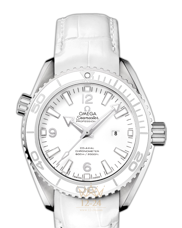 Развивая тему морского наследия бренда, в 2005 году OMEGA выпустила линию Planet Ocean. Стильная модель OMEGA Seamaster Planet Ocean 600M воздает дань историческим традициям дайверских часов OMEGA. На ее белом циферблате, защищенном устойчивым к царапинам сапфировым стеклом, выделяется окошко указателя даты в положении «3 часа». Корпус диаметром 37,5 мм из нержавеющей стали с белым кожаным ремешком дополнен керамическим дайверским безелем, вращающимся в одном направлении. Часы OMEGA Seamaster Planet Ocean 600M, оснащенные гелиевым клапаном, сохраняют водонепроницаемость на глубинах до 60 бар (600 метров / 2000 футов). Коаксиальный калибр OMEGA 8520, механическое сердце этих часов, хорошо виден через прозрачную заднюю крышку.