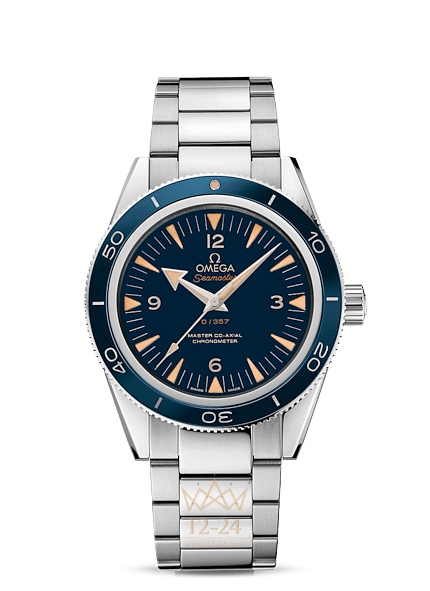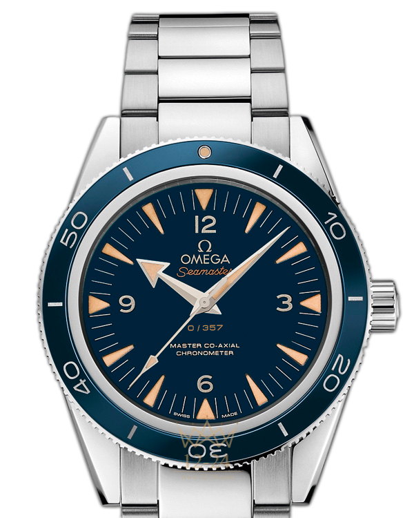 OMEGA впервые представила часы Seamaster 300 в 1957 году. Они были специально разработаны для любителей подводного плавания и работающих под водой профессионалов. Спустя более полувека часы возродились в полностью обновленном виде на радость новому поколению отважных искателей приключений. Эти часы Seamaster 300 имеют синий эмалированный циферблат со стрелками из 18-каратного белого золота, покрытыми люминофором Super-LumiNova винтажного оттенка. На полированное керамическое кольцо безеля нанесена дайверская шкала из сплава платины 850 пробы и Liquidmetal. Сатинированный и полированный корпус диаметром 41 мм из платины 950 пробы дополняет платиновый браслет. Часы выпускаются ограниченной серией из 357 экземпляров. Номер в составе ограниченной серии (0/357) указан на циферблате. Сквозь прозрачную заднюю крышку корпуса виден антимагнитный часовой механизм OMEGA Master Co-Axial, калибр 8401.