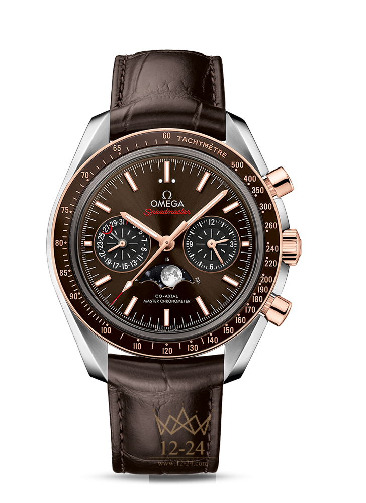 Часы диаметром 44,25 мм оснащены коричневым циферблатом с радиальным сатинированием и полированными стрелками и индексами из 18-каратного золота Sedna™. В положении "6 часов" размещен точный указатель фаз Луны: лунный диск из металлизированного хрусталя с микроструктурой детально передает облик естественного спутника Земли.