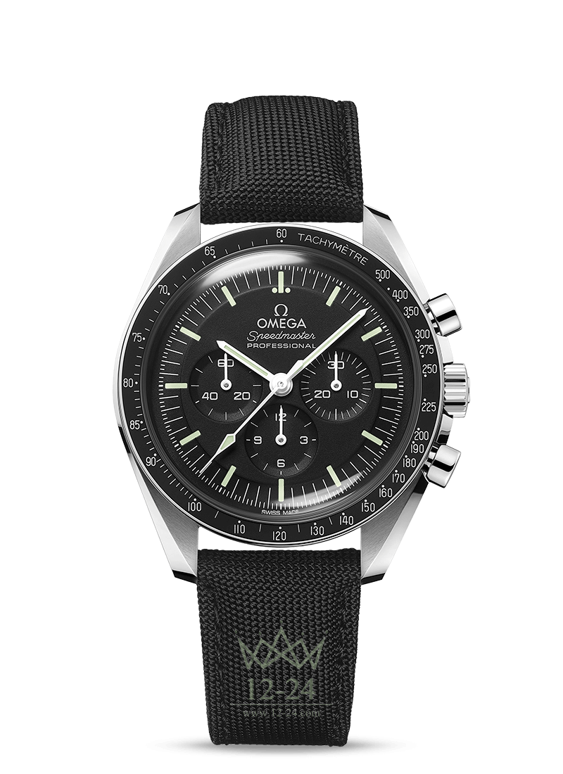 Часы Moonwatch имеют нейлоновый ремешок и корпус из нержавеющей стали диаметром 42 мм. Они украшены хезалитовым стеклом спереди и медальоном с рельефным изображением морского конька на задней крышке. Дизайн напоминает часы Speedmaster 4-го поколения, побывавшие на Луне. У них асимметричный корпус, черный многоуровневый циферблат и классическая точка над отметкой 90 на безеле из анодированного алюминия.<br>