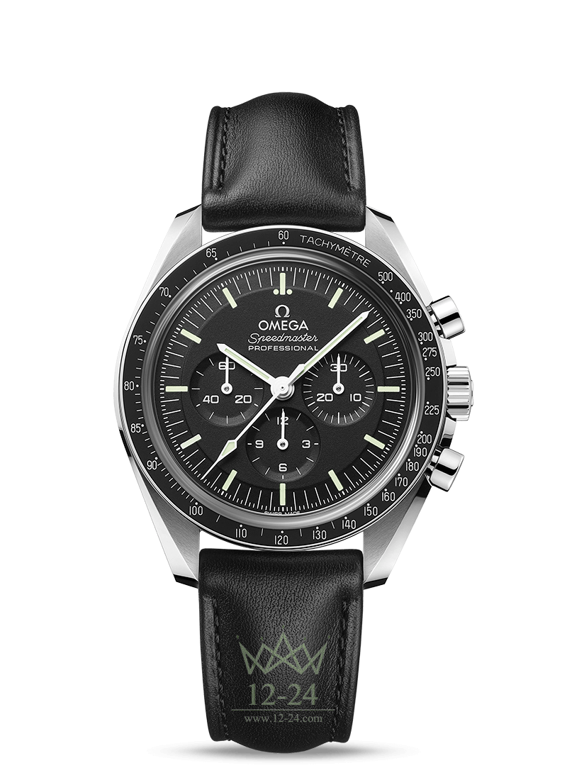 Часы Moonwatch имеют черный кожаный ремешок и корпус из нержавеющей стали диаметром 42 мм. Сапфировое стекло установлено с лицевой и задней стороны корпуса. Дизайн напоминает часы Speedmaster 4-го поколения, побывавшие на Луне. У них асимметричный корпус, черный многоуровневый циферблат с логотипом OMEGA и классическая точка над отметкой 90 на безеле из анодированного алюминия.