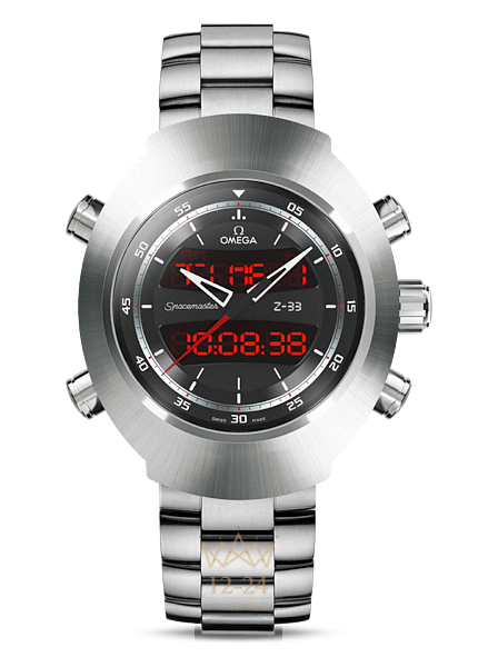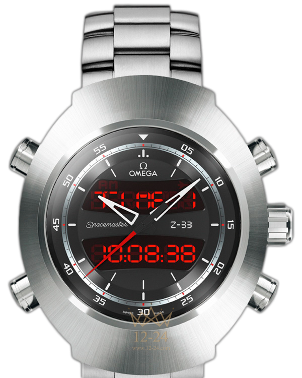 Часы OMEGA Speedmaster Spacemaster Z-33 переняли знаковую форму корпуса «Pilot Line» и оснащаются новейшим многофункциональным кварцевым механизмом, калибр 5666. Электронный циферблат часов дополнен привычными стрелками, которые подводятся находящейся в положении «3 часа» головкой. Помимо нее, на торцах корпуса имеются кнопки для управления цифровыми функциями часов. Среди этих функций – индикация даты и всеобщего скоординированного времени (UTC), отсчет времени двух часовых поясов, будильник и вечный календарь. Для измерения отрезков времени предназначены функции хронографа и таймера обратного отсчета. Имеются также программируемые функции для пилотов, позволяющие записывать данные десяти полетов и выводить их с указанием времени и даты. Часовой корпус из титана Grade 5 дополняет титановый браслет.