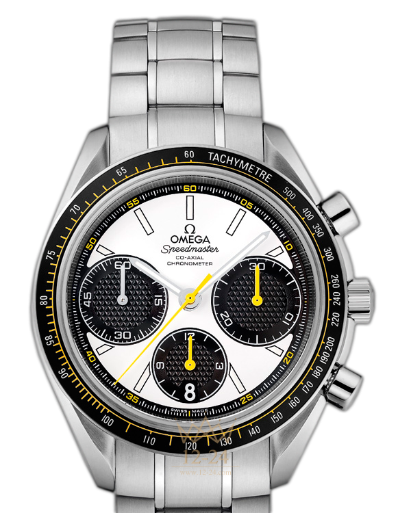 Побывав во всех шести лунных экспедициях, часы OMEGA Speedmaster вошли в ряд культовых моделей бренда. Легендарные часы Speedmaster выражают перво-проходческий дух марки OMEGA, в еще большей степени проявляющийся в модернизированной модели OMEGA Speedmaster Racing. Эта модель имеет белый с желтыми элементами циферблат с устойчивым к царапинам сапфировым стеклом, окошком указателя даты, отдельным индикатором малой секундной стрелки и 30-минутным и 12-часовым счетчиками; каждый из черных вспомогательных индикаторов украшен текстурным узором «Clous de Paris». Безель с тахиметрической шкалой на черном матовом алюминиевом кольце закреплен на корпусе диаметром 40 мм из нержавеющей стали. Часы дополняет браслет из нержавеющей стали. Основу этих часов составляет коаксиальный часовой механизм, калибр 3330.