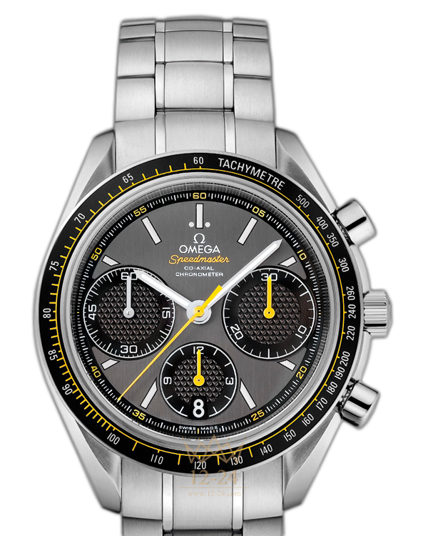Побывав во всех шести лунных экспедициях, часы OMEGA Speedmaster вошли в ряд культовых моделей бренда. Легендарные часы Speedmaster выражают перво-проходческий дух марки OMEGA, в еще большей степени проявляющийся в модернизированной модели OMEGA Speedmaster Racing. Эта модель имеет серый с желтыми элементами циферблат с устойчивым к царапинам сапфировым стеклом, окошком указателя даты, отдельным индикатором малой секундной стрелки и 30-минутным и 12-часовым счетчиками; каждый из черных вспомогательных индикаторов украшен текстурным узором «Clous de Paris». Безель с тахиметрической шкалой на черном матовом алюминиевом кольце закреплен на корпусе диаметром 40 мм из нержавеющей стали. Часы дополняет браслет из нержавеющей стали. Основу этих часов составляет коаксиальный часовой механизм, калибр 3330.