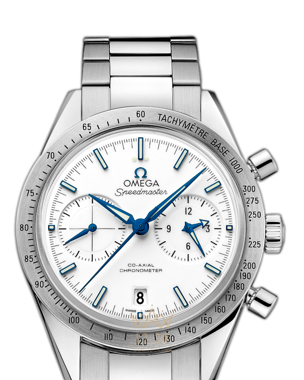 OMEGA Speedmaster – одни из самых культовых часов OMEGA. Побывав во всех шести лунных экспедициях, легендарные часы Speedmaster стали впечатляющим символом, выражающим перво-проходческий дух марки OMEGA. Эта модель имеет белый лакированный циферблат с малой секундной стрелкой в положении «9 часов» и совмещенными 12-часовым и 60-минутным счетчиками на вспомогательном циферблате в положении «3 часа». Имеются также центральная стрелка хронографа и окошко указателя даты в положении «6 часов». Эффектный циферблат защищен устойчивым к царапинам сапфировым стеклом. Сатинированный безель с тахиметрической шкалой закреплен на корпусе диаметром 41,50 мм из титана grade 5 с титановым браслетом. Основу этих часов составляет калибр 9300 – первый коаксиальный часовой механизм OMEGA с хронографом.