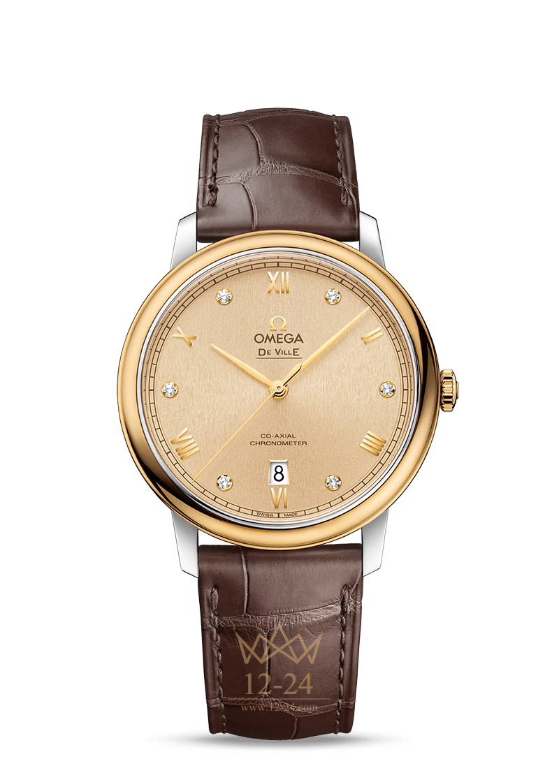 Обрамляющий устойчивое к царапинам сапфировое стекло безель из 18-каратного желтого золота закреплен на корпусе из нержавеющей стали диаметром 39,5 мм, который дополнен ремешком из кожи коричневого цвета. Часы оснащены коаксиальным часовым механизмом OMEGA 2500.