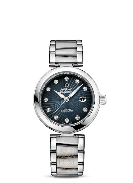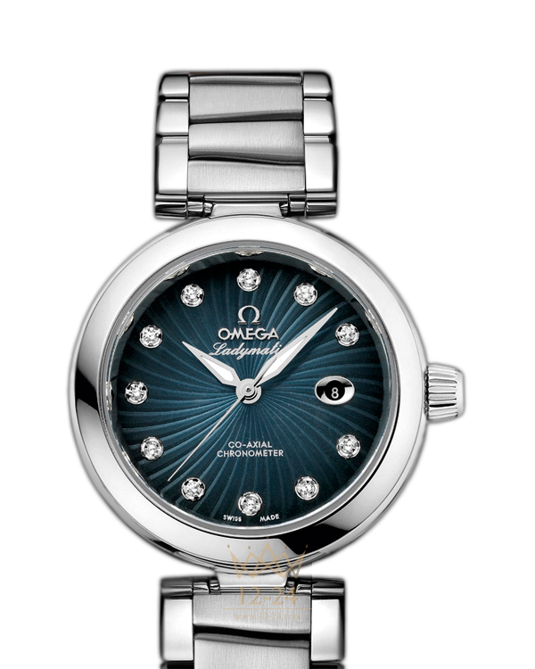 Линия OMEGA Ladymatic являет собой притягательное сочетание неординарного дизайна и новаторского подхода к часовому искусству. Она разработана специально для представительниц прекрасного пола, которые выбирают себе часы не только по внешнему виду, но и по их техническим характеристикам. Данная модель имеет темно-серый циферблат с бриллиантовыми часовыми метками, звездным узором и окошком указателя даты в положении «3 часа». Изысканный циферблат защищен устойчивым к царапинам сапфировым стеклом. Корпус диаметром 34 мм из нержавеющей стали с браслетом из нержавеющей стали дополнен элегантным безелем. Кольцо из нержавеющей стали с волнистым узором и внутренней вставкой из черной керамики украшает боковую сторону корпуса. Прозрачная задняя крышка позволяет в деталях рассмотреть коаксиальный калибр OMEGA 8520.