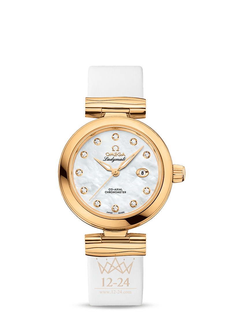 У данной модели часовой корпус, насчитывающий в диаметре 34 мм, и волнистые звенья белого кожаного ремешка изготовлены из 18 — каратного желтого золота. Этот красивый материал использован также для изготовления полированных стрелок формы «альфа» и 11 украшенных бриллиантами часовых индексов.