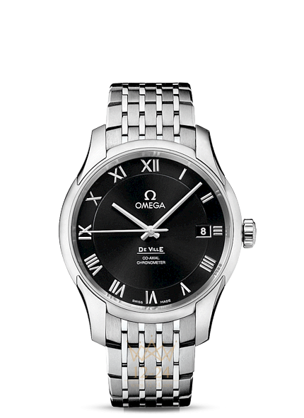 Каждая из моделей элегантной серии OMEGA De Ville характеризуется оригинальным классическим дизайном. Данная модель имеет черный циферблат с делением на две зоны с римскими цифрами и окошком указателя даты в положении «3 часа». Эффектный циферблат защищен устойчивым к царапинам сапфировым стеклом. Корпус диаметром 41 мм из нержавеющей стали с браслетом из нержавеющей стали дополнен элегантным безелем. В этой изысканной модели используется коаксиальный механизм OMEGA, калибр 8500, который хорошо виден сквозь прозрачную заднюю крышку.