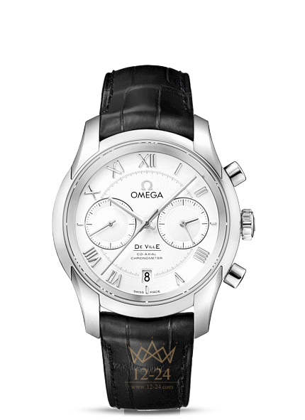 Элегантные часы OMEGA De Ville характеризуются уникальным классическим дизайном. Этот хронограф имеет опалово-серебристый циферблат с делением на две зоны, римскими цифрами, окошком указателя даты в положении «6 часов» и устойчивым к царапинам сапфировым стеклом. На циферблате присутствуют отдельный индикатор малой секундной стрелки, а также 60-минутный и 12-часовой счетчики, размещенные на одном индикаторе для более удобного считывания результатов хронометража. Корпус диаметром 42 мм из нержавеющей стали с черным кожаным ремешком дополнен элегантным безелем. В этой изысканной модели используется коаксиальный механизм OMEGA, калибр 9300, который виден сквозь прозрачную заднюю крышку корпуса.