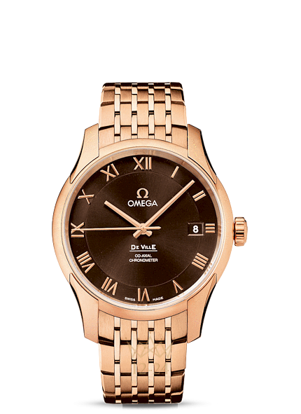 Каждая из моделей элегантной серии OMEGA De Ville характеризуется оригинальным классическим дизайном. Данная модель имеет коричневый циферблат с делением на две зоны, римскими цифрами из 18-каратного золота и окошком указателя даты в положении «3 часа». Эффектный циферблат защищен устойчивым к царапинам сапфировым стеклом. Корпус диаметром 41 мм из 18-каратного красного золота с браслетом из 18-каратного красного золота дополнен элегантным безелем. В этой изысканной модели используется коаксиальный механизм OMEGA, калибр 8501, который хорошо виден сквозь прозрачную заднюю крышку.