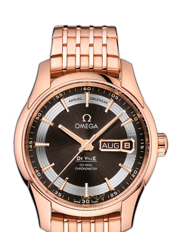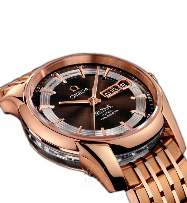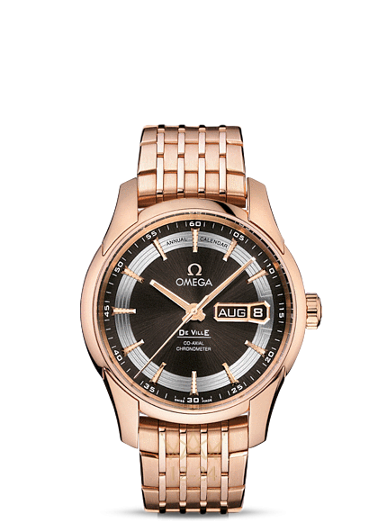 Часы OMEGA De Ville Hour Vision впервые появились в 2007 году и с тех пор каждым своим элементом – от изысканной отделки циферблата до изощренной механики внутри – демонстрируют часовое мастерство высочайшего уровня. Данная модель имеет коричневый циферблат с рифленой часовой шкалой с родиевым покрытием и окошками указателей даты и месяца в положении «3 часа». Эффектный циферблат защищен устойчивым к царапинам сапфировым стеклом. Корпус диаметром 41 мм из 18-каратного красного золота со внутренней вставкой из сапфирового стекла дополнен безелем из 18-каратного красного золота и браслетом из 18-каратного красного золота. Основу этих превосходных часов составляет коаксиальный часовой механизм OMEGA, калибр 8611, который виден сквозь прозрачную заднюю крышку корпуса.