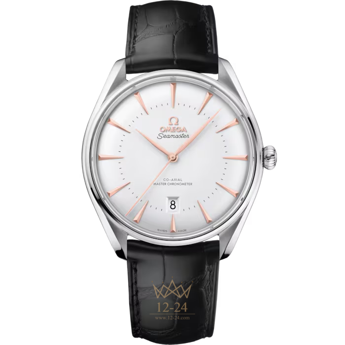 Эта модель диаметром 39,5 мм обладает водонепроницаемостью до 6 бар (60 метров). Среди ее отличительных черт также окошко даты в положении "6 часов" и сферическая заводная головка с рельефным логотипом OMEGA. Часы комплектуются ремешком из черной кожи.